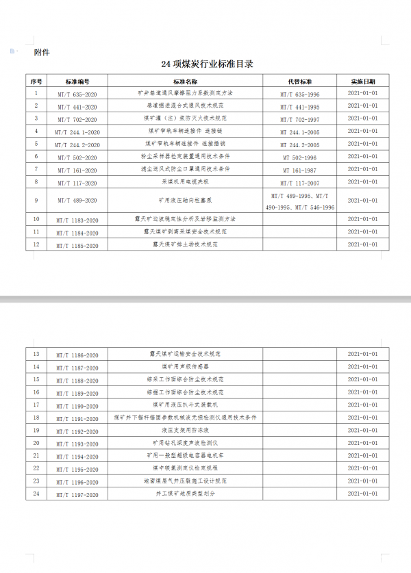 附件:24項(xiàng)煤炭行業(yè)標(biāo)準(zhǔn)目錄