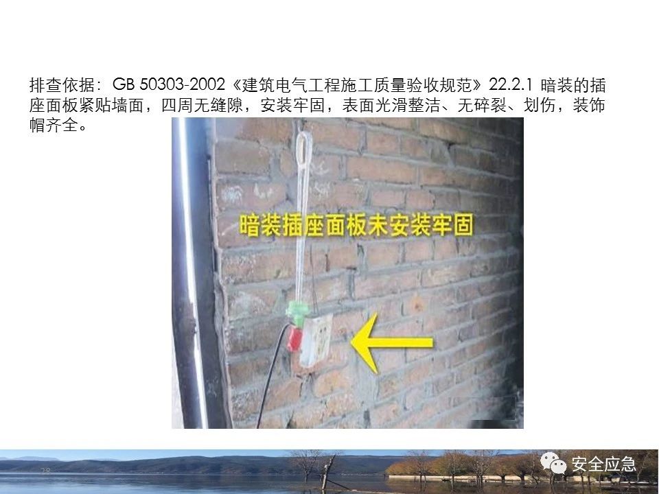 案例57 事故案例57:某工作人員在作業(yè)平臺工作,由于作業(yè)平臺不牢靠,安全帶掛系不牢靠,移動過程中踩到未綁扎的腳手板,失穩(wěn)導(dǎo)致高處墜落。 案例58 事故案例58:某供電所處理用戶低壓架空導(dǎo)線斷落故障。準備在斷線處的房子墻角加裝一組線碼和對02桿上四相導(dǎo)線進行重新駁接,完成新線碼安裝及地面B相導(dǎo)線接駁。作業(yè)人員在地面系好安全帶,使用腳扣登桿進行導(dǎo)線緊固及接電作業(yè),上桿后安全帶未固定就開始作業(yè)。在進行B相導(dǎo)線接電時不慎從桿上滑下墜落死亡。 案例59 事故案例59:某供電所員工在現(xiàn)場作業(yè),沒有采取防墜落安全措施,沒戴安全帽,爬上梯子,站在離地面約4米高處,右手解開綁扎線。扎線松脫時,手部失去受力點后,失去平衡,向后翻倒墜落,經(jīng)搶救無效死亡。 案例60 事故案例60:某施工隊開展10kV線路桿塔旁的樹木修剪工作。一名工作人員在未正確佩戴安全帽的情況下,修剪樹木下移時,不慎踩斷枯枝從約3.5m高的樹上墜落,墜落過程中安全帽脫離,頭部直接著地死亡。 l 使用非絕緣工器具 案例61 事故案例61:某變電站核對設(shè)備銘牌,設(shè)備銘牌在設(shè)備頂部帶電位置(距離地面3米左右)。工作人員使用抄表器遠距離隔空觀看,由于距離較遠,于是使用抄表器頂在左腹部,將抄表器繼續(xù)緩慢向上調(diào)整試圖觀看清楚。調(diào)整過程中,造成避雷器帶電側(cè)對抄表器上端頭放電,造成觸電。 l 不使用絕緣工器具或絕緣性能不合格 案例62 事故案例62:在某10kV線路搶修過程中,對線路進行分段試送時,操作人員帶故障合上隔離開關(guān)對線路送電,產(chǎn)生弧光。加之由于在雨天用無防雨罩的絕緣棒,操作人員沒有穿絕緣靴,操作人員觸電死亡。 案例63 事故案例63:某工作人員單人在下雨的情況下未使用任何工具拆除0.4kV臨時用電線路,導(dǎo)致觸電。 其它案例見22、50。 l 不使用工器具或施工機具 案例64 事故案例64:某施工現(xiàn)場一電動切割機外殼沒有有效接地,漏電開關(guān)不合格,使用前未檢查。施工人員走近切割機,沒穿絕緣鞋,外殼放電,人員觸電死亡。 其它案例見13、14、15、62。 (24)設(shè)備、工器具存在隱患 l 設(shè)備存在缺陷 案例65 事故案例65:某抽水蓄能電站開展引水斜井施工。施工人員進入現(xiàn)場施工,其中1人操作卷揚機,1名班長和1名安全員在斜井上方的平臺上組織施工和監(jiān)護,其余7名施工人員進入斜井開展軌道拆除工作。送料小車2名運行人員操作送料小車上井,送料小車向上運行至距上井口50米左右時,因卷揚機故障且制動失效,小車突然由上行轉(zhuǎn)為下滑,1名小車運行人員隨即從小車側(cè)面跳出,另外1名小車運行人員未能跳出,隨同小車一起墜落。小車在墜落過程中,撞上下方正在拆除軌道的5名施工人員,并將其中3人直接撞落至井底,另2人被撞至軌道下方的井壁上。最后造成6人死亡。 案例66 事故案例66:某施工隊開展10kV線路桿號噴刷工作。工作班成員用左手去拉開垂吊在電桿上的拉線時觸電。檢查發(fā)現(xiàn)桿兩條拉線中的一條拉線釬鋼從地端脫出,拉線松弛懸掛在電桿上,作業(yè)人員拽碰該拉線時導(dǎo)致拉線與帶電的B相引流線搭碰放電。 案例67 事故案例67:某供電所開展10kV故障線路分段試送工作。工作人員穿絕緣靴、佩戴絕緣手套使用絕緣操作桿,對#12桿分段開關(guān)進行合閘操作時,開關(guān)負荷側(cè)B相引線在支撐瓷柱處發(fā)生電弧火花燃燒(后發(fā)現(xiàn)B相引線燒斷),工作人員觸電倒地,由于跨步電壓觸電死亡。經(jīng)檢查,發(fā)現(xiàn)#12桿分段開關(guān)安裝質(zhì)量存在嚴重缺陷、工藝不滿足安全規(guī)程要求,負荷側(cè)B相引線與鄰相距離不足,且違規(guī)將B相引線固定在支撐絕緣子第一片傘群處,導(dǎo)致B相導(dǎo)線磨損后發(fā)生間歇性發(fā)電。 案例68 事故案例68:某變電站抄錄35kV某線路避雷器放電記錄器動作數(shù)據(jù)。該避雷器放電記錄器離地面高度4.7米,值班運行人員無法用肉眼直接看清數(shù)據(jù),長期存在值班人員使用低壓電能表抄表器抄錄放電記錄數(shù)據(jù)的重大安全隱患。工作人員使用非絕緣工具進行抄錄,監(jiān)護人員未提出異議,導(dǎo)致觸電。 其它案例見60。 l 工器具存在缺陷 案例69 事故案例69:某單位進行線路施工工作。工作人員在使用有毛刺的大錘敲擊鐵釬時,毛刺脫落飛出,飛到距離3.8米遠處工作人員身上,擊中頸動脈,醫(yī)治無效死亡。 (25)風(fēng)險管控不到位 案例70 事故案例70:某施工隊將貨車上的700米左右導(dǎo)線的導(dǎo)線盤放到地下。當(dāng)兩人同時打開車廂后擋板們時,貨廂內(nèi)的導(dǎo)線盤突然從車上滾下,把一名員工整個人壓在下面,經(jīng)搶救無效后死亡。 案例71 事故案例71:某施工隊新建110kV變電站時開展10kV#2電容器組電抗器就位工作。當(dāng)電抗器移動至兩對槽鋼導(dǎo)軌的搭接口時,前面槽鋼突然發(fā)生偏移,導(dǎo)致第一根滾筒從兩節(jié)槽鋼接縫處跌落,使得電抗器向前方墻體傾斜,1名工作人員從電抗器側(cè)面轉(zhuǎn)到電抗器傾倒方向,試圖扶正電抗器,結(jié)果被壓在電抗器與墻體之間,經(jīng)搶救無效死亡。 案例72 事故案例72:某施工隊開展線路測量工作。測量完一段線路后,兩名工作人員一前一后手拉50m長含有金屬線
