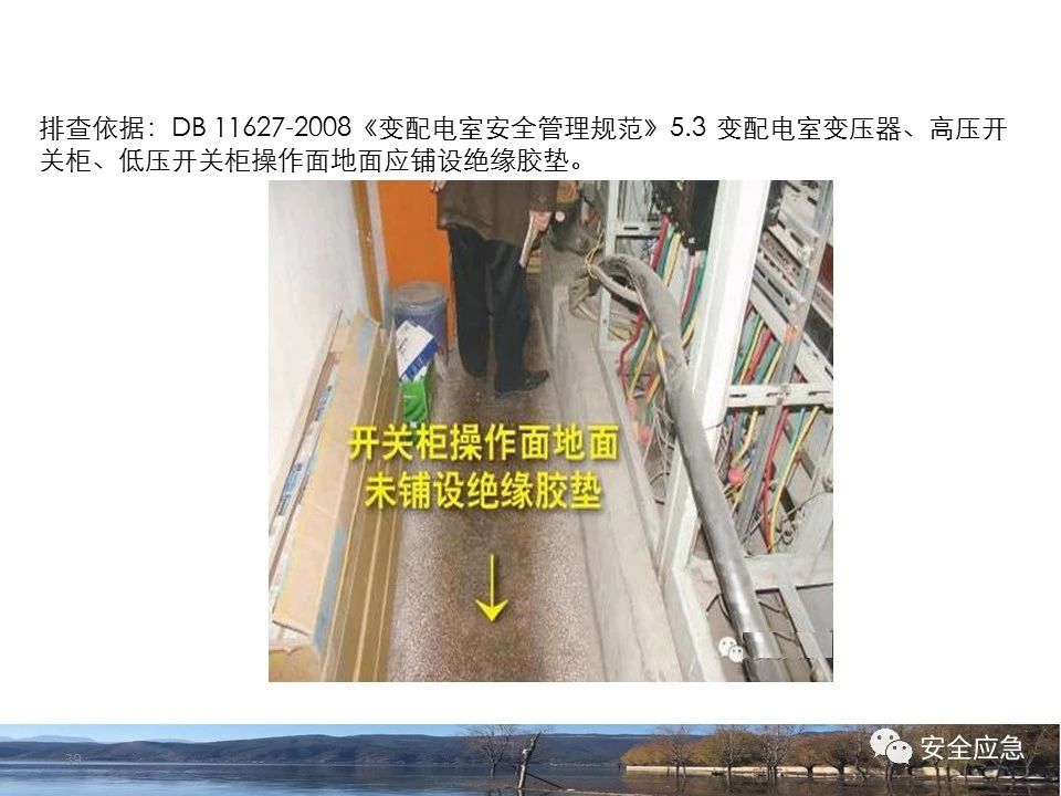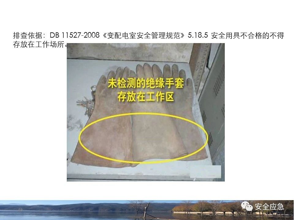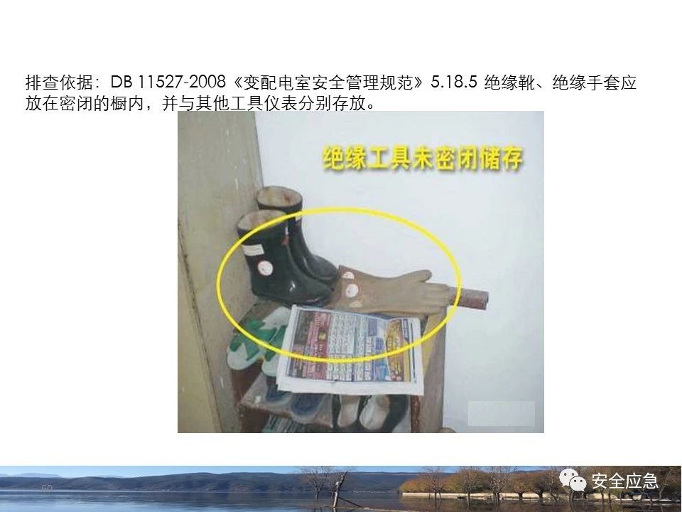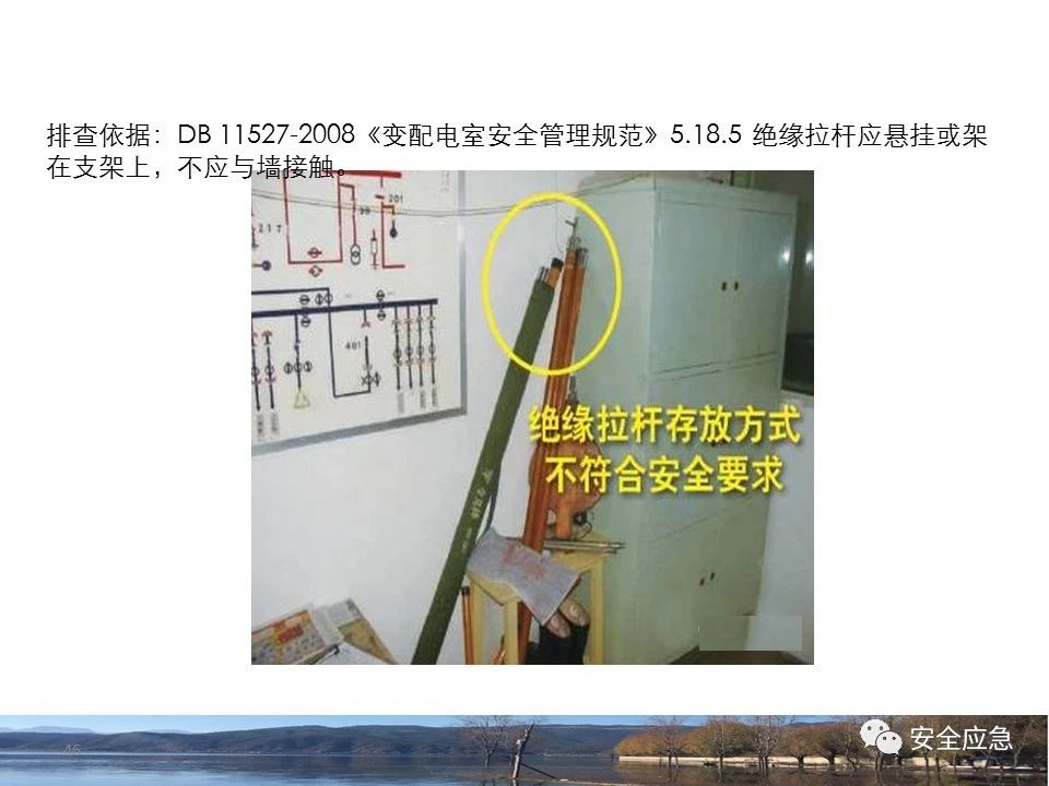 案例1 事故案例1:某輸電管理所對某35kV線路停電登檢,其中一段與10kV線路共桿塔架設(shè),35kV線路在上層,10kV線路在下層,工作前10kV、35kV線路均停電、驗電懸掛接地線。工作過程中10kV線路送電,3名工作班成員1死2傷。 案例2 事故案例2:某供電所開展拆除10kV空線作業(yè)。該桿塔有2回10kV線路,一回在上方,運行狀態(tài)。待拆除空線在下方。作業(yè)人員未進行驗電,登桿后掛接地線。在先掛好B相后,由于掛不到AC相,爬到電桿頂上,此時碰觸到運行線路觸電死亡。 案例3 事故案例3:某供電所開展10kV線路拆除作業(yè)。桿塔西側(cè)待拆除線路在檢修狀態(tài),東側(cè)2回10kV線路分上下兩層在運行狀態(tài)。工作任務(wù)結(jié)束后,工作負責(zé)人看見塔上電纜搭在第二臺鋼塔橫擔(dān)上,隨即上塔處理,準備從塔的西面移至東面準備抬電纜時,后頸部碰觸到帶電線路觸電死亡。 (2)安全距離不夠的線路未停電 案例4 事故案例4:事故前,施工單位在正常運行的10kV青龍線上方搭建竹跨越架。10kV青龍線99-100號桿段上方有帶電運行的35kV田金線跨越,最短距離5.37米。由于10kV青龍線跨越架倒塌,導(dǎo)致斷桿、多檔導(dǎo)線脫落。隨后,工作人員開展缺處工作。在10kV青龍線導(dǎo)線收緊時,導(dǎo)線被抬升后與上方運行的35kV田金線安全距離不足放電,導(dǎo)致收線的8名施工人員觸電,4人死亡4人受傷。 案例5 事故案例5:某單位進行400V干線收緊弧垂工作,工作地點上方交叉跨越的10kV線路距離400V主干配電線#1桿桿頂830mm,但未停電。工作人員準備實施緊線作業(yè),當(dāng)左腿跨至橫擔(dān)上時,上方交叉跨越的10kV線路對其右肩背放電。 案例6 事故案例6:某施工隊開展新建10kV線路穿越運行的110kV線路作業(yè),兩回線距離僅有1.3m 左右,造成110kV線路對新架設(shè)10kV線路放電,死亡1人,重傷1人。 案例7 事故案例7:某施工隊進行10kV新建立桿施工過程中,扒桿倒在鄰近運行的10kV運行線路上,導(dǎo)致人身觸電,2人死亡,1人受傷。 案例8 事故案例8:某施工隊負責(zé)人開展低壓線路架設(shè)工作。手拉導(dǎo)線由B2#桿展放上到配變后,兩名工作人員手持導(dǎo)線同時上到帶電的變壓器雙桿上,一名工作人員在上層工作時與10kV裸導(dǎo)線較近,將手持的400V絕緣導(dǎo)線誤碰到10kV變框小母線后,導(dǎo)至兩人同時觸電。 案例9 事故案例9:某施工隊開展10kV高壓跌落熔斷器安裝工作。本應(yīng)在原10kV阿租支線0號桿、1號桿,10kV一街Ⅱ回線26號桿、28號桿各裝一組接地線。但實際10kV一街Ⅱ回線27號桿大號側(cè)、原10kV阿租支線1號桿大號側(cè)各裝設(shè)了1組接地線。同時,接地線的接地樁埋深為41 cm,因土壤長期干旱,造成接地電阻較大(實測值:333歐),遠遠超過接地要求值(30歐),接地線失去接地保護作用。由于10kV一街線坡頭支線(原帶電)與10kV一街Ⅱ回線(原不帶電)桿之間有交叉跨越(垂直距離約2米),檔距較大,刮大風(fēng)導(dǎo)致10kV一街線坡頭支線向上舞動,對10kV一街Ⅱ回線放電,致使2名作業(yè)人員觸電,1死1傷。 其它案例見37、38。 (3)錯停線路 案例10 事故案例10:某工作人員與調(diào)度聯(lián)系停電線路時,錯誤說成其他線路,導(dǎo)致其他線路停電而工作線路未停電。隨后,工作人員在沒有采取驗電、掛接地線等安全措施的情況下便登桿,造成觸電。 (4)開關(guān)柜相鄰柜之間沒有隔板,但未停相鄰間隔 案例11 事故案例11:某檢修班組開展10kV開關(guān)柜(GG1A柜)檢修作業(yè)。工作人員獨自爬上4321隔離開關(guān)柜頂從事4321隔離開關(guān)檢修相關(guān)工作。因其與相鄰間隔的帶電的10kVII段母線安全距離不夠,觸電死亡。 案例12 事故案例12:某工作人員在開關(guān)柜內(nèi)進行二次接線,由于工作地點與相鄰柜之間沒有隔板,意外墜入相鄰帶電開關(guān)柜,導(dǎo)致觸電。 (5)不停電不正確使用安全工器具開展低壓作業(yè) 案例13 事故案例13:某廠家對220kV變壓器的繞組溫度計進行更換消缺工作。在沒有對繞組溫度計工作電源(220V)停電的情況下作業(yè)。將帶有220V電壓的電纜芯線上的絕緣帶拆除時,誤碰帶電芯線造成觸電死亡。 案例14 事故案例14:某供電所員工檢查一客戶家中斷電情況。巡線時發(fā)現(xiàn)220V低壓線路導(dǎo)線斷線,在未斷開低壓開關(guān)、未戴絕緣手套的情況下,試圖將導(dǎo)線卷起時,不慎觸碰帶電導(dǎo)線中間裸露部分,導(dǎo)致觸電死亡。 案例15 事故案例15:某工作人員在檢查時發(fā)現(xiàn)220V低壓線路故障點,在未戴手套、未使用絕緣梯子的情況下,在拆除三通PVC管時,左手不慎觸碰帶電絕緣導(dǎo)線破損點裸露部分,導(dǎo)致觸電受傷。 2.驗電環(huán)節(jié) (6)不檢查設(shè)備狀態(tài)、不驗電 案例16 事故案例16:供電所某員工在未攜帶驗電器、接地線、絕緣手套、絕緣靴、安全帽等必備安全工器具的情況下處理10kV用戶缺相故障。一名工作人員拉開AB相跌落保險后,由于尿急想去小便,就把絕緣操作桿遞給正在低頭系安全帶的另一名工作人員,并說還有一相。另一名工作人員接過操作桿后順手放在地上,也未檢查跌落保險狀態(tài),也沒有驗電、裝設(shè)接地線即開始登桿,觸電死亡。 案例17 事故案例17:某10kV配變避雷器斷裂,跌落保險燒壞。兩名工作人員到現(xiàn)場進行缺陷處理,在配變C相跌落保險未拉開、未驗電裝設(shè)接地線的情況下,某搶修人員進行了