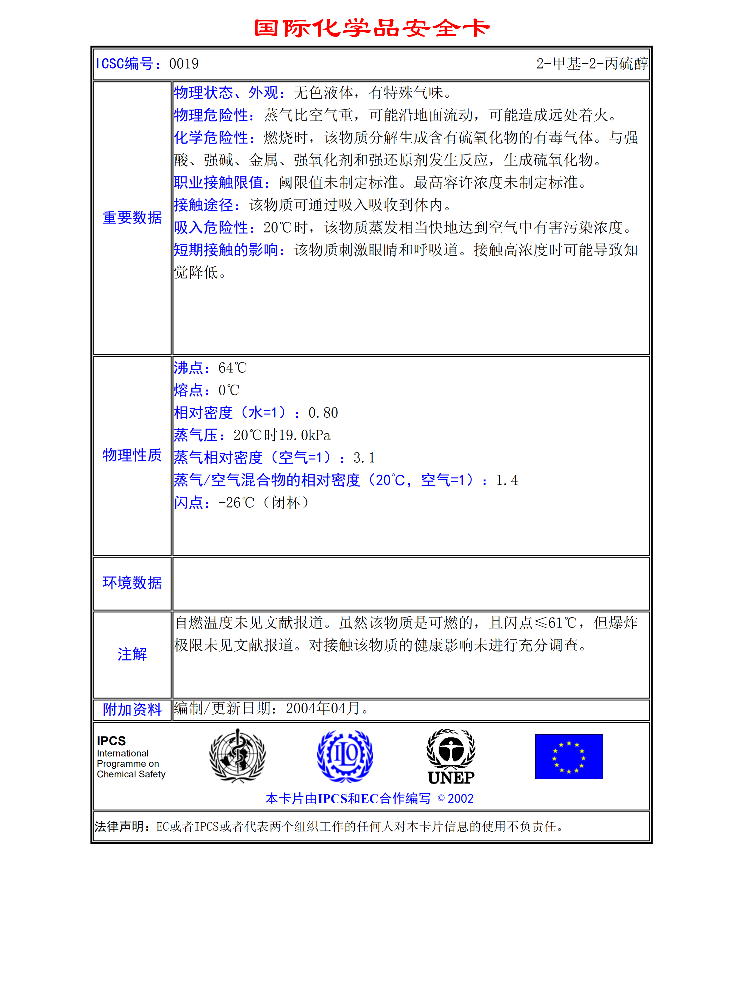 2-甲基-2-丙硫醇MSDS