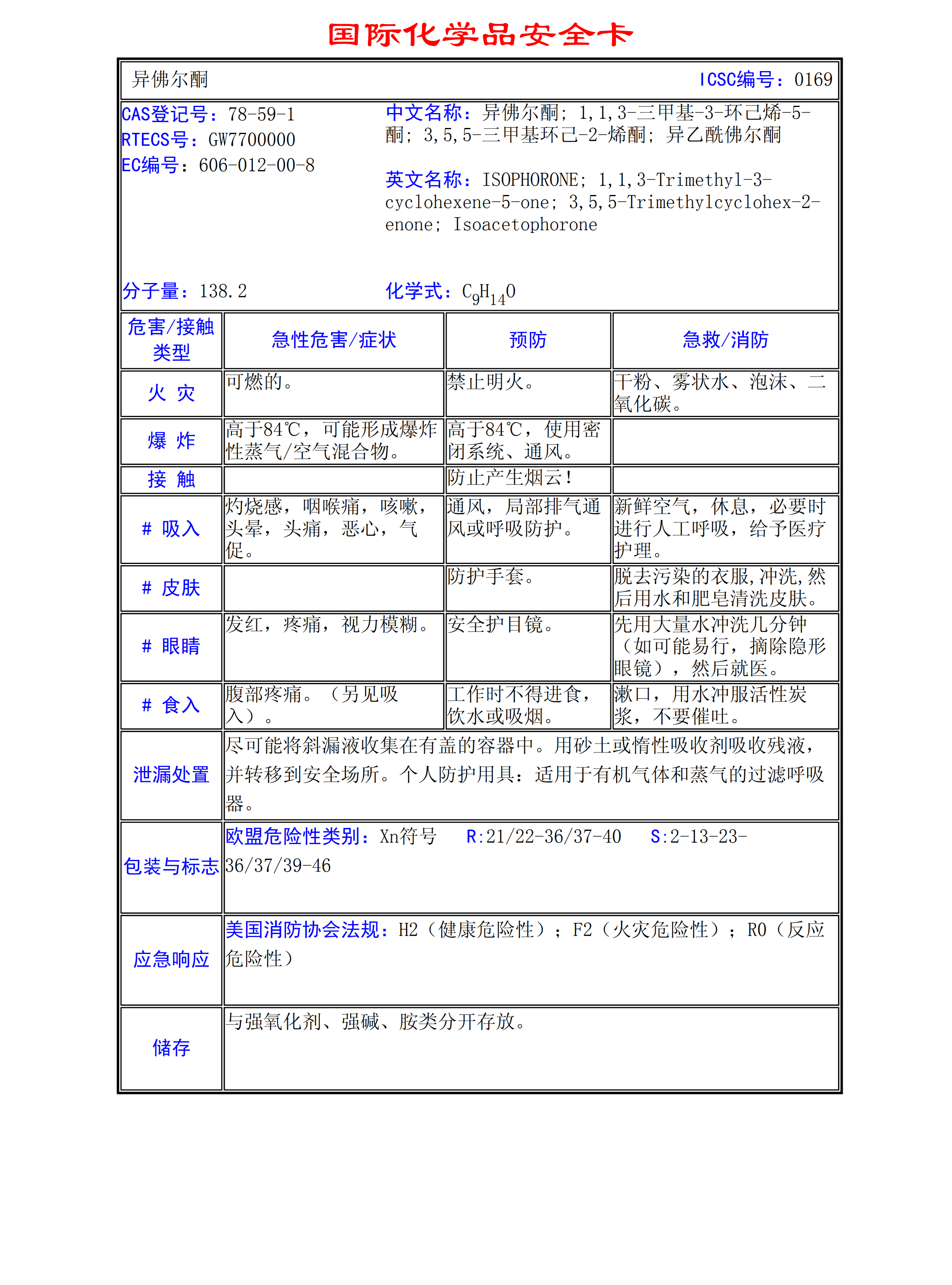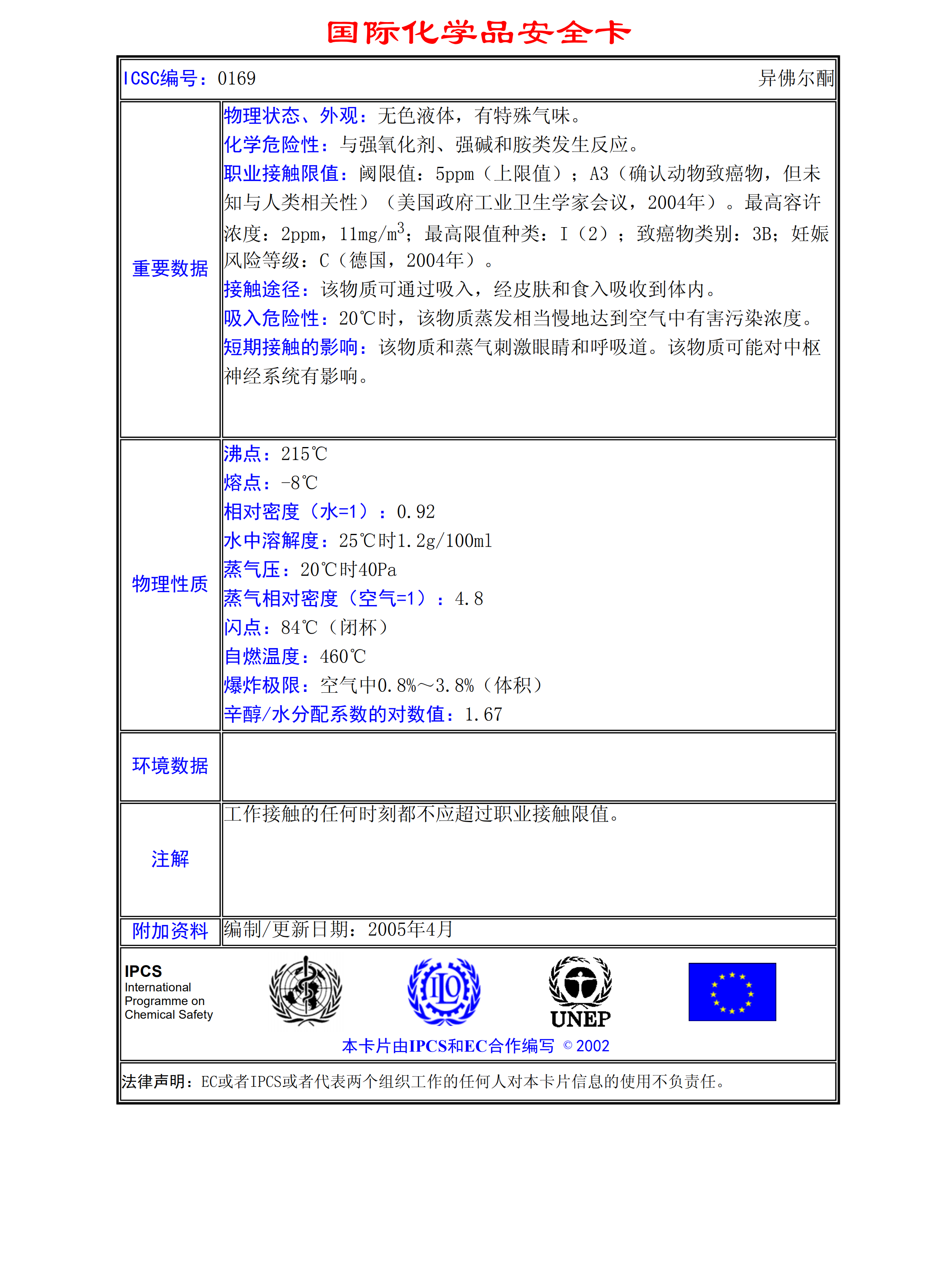 異佛爾酮MSDS