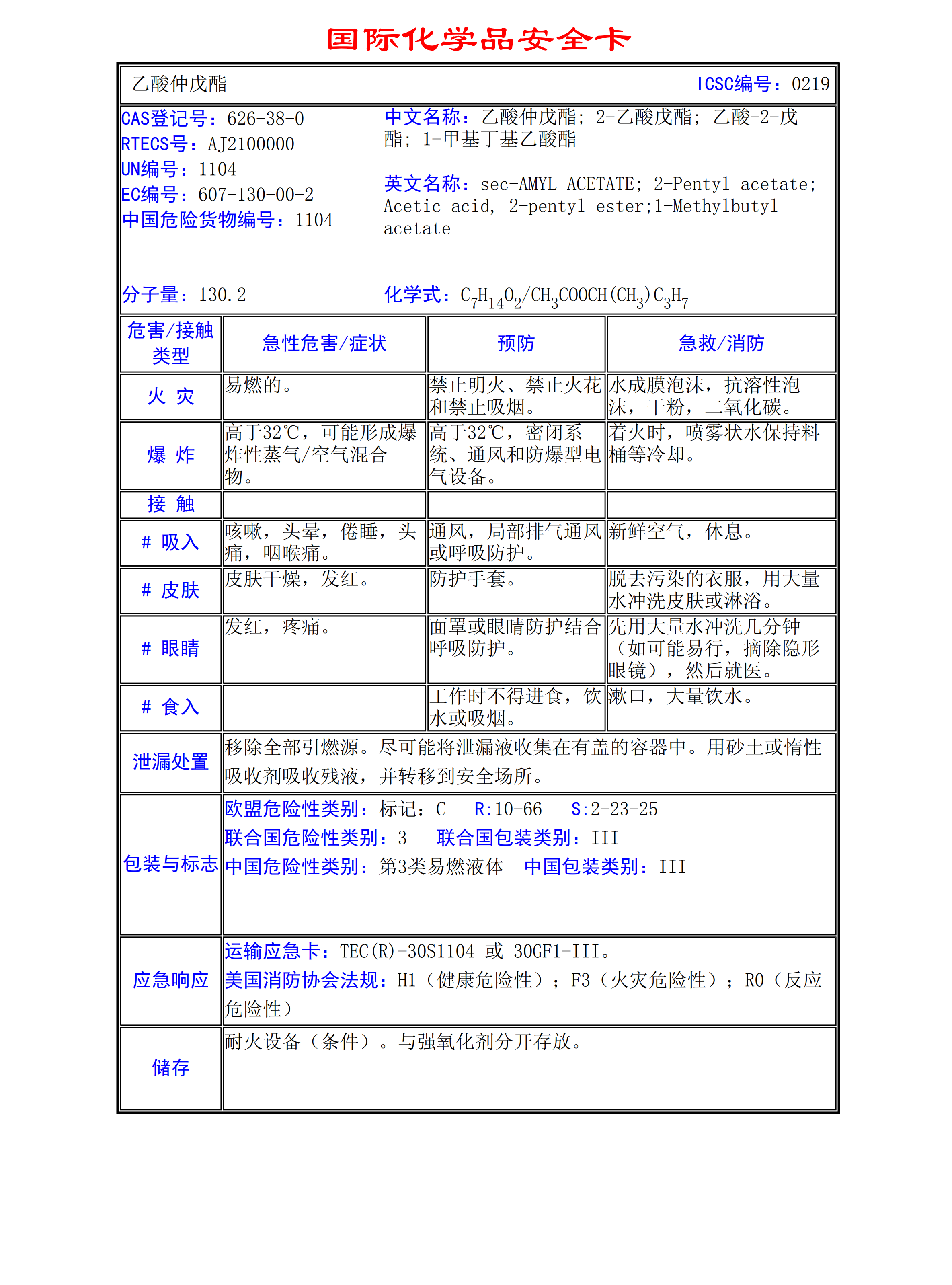 乙酸仲戊酯MSDS