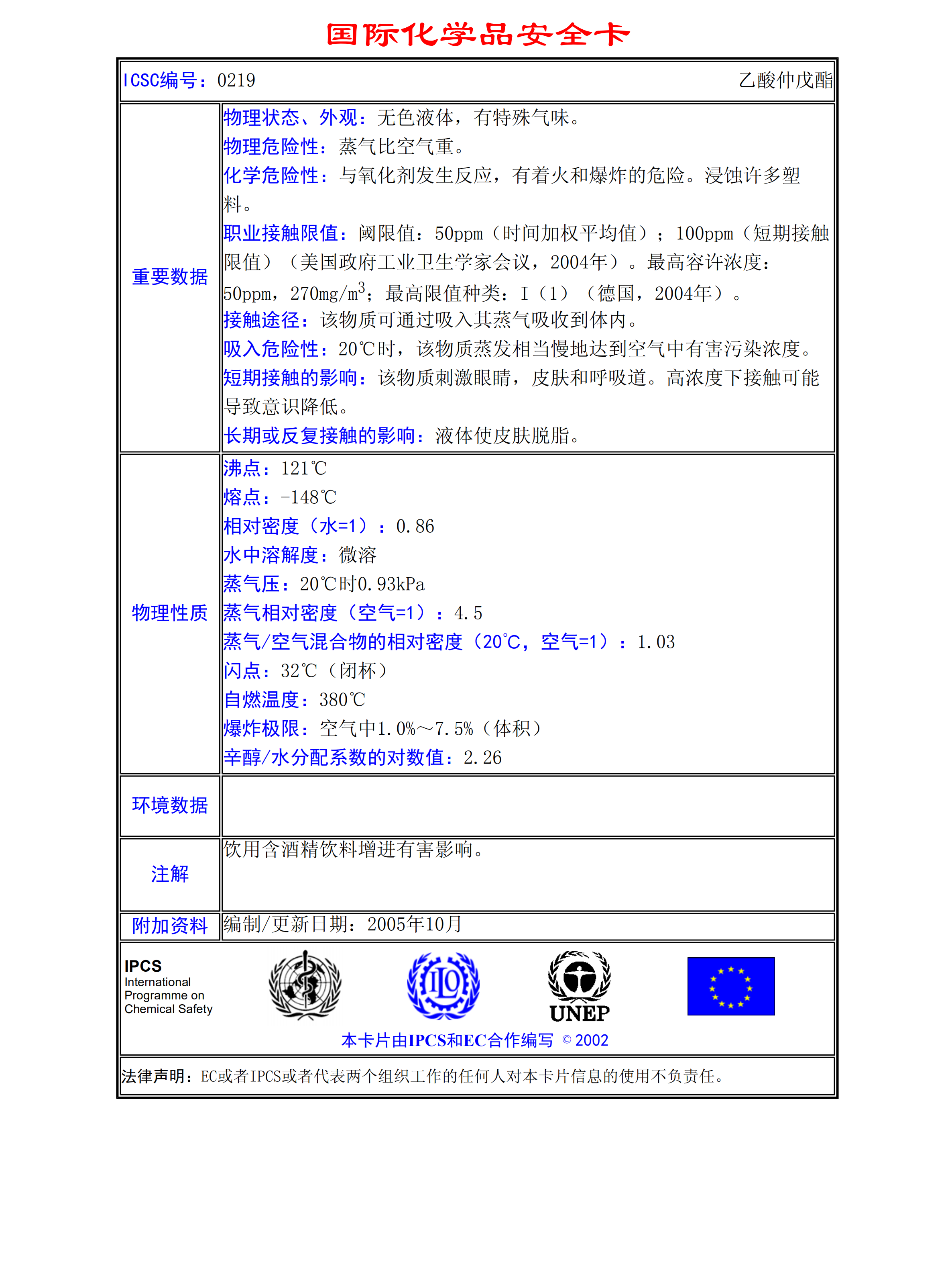 乙酸正戊酯MSDS