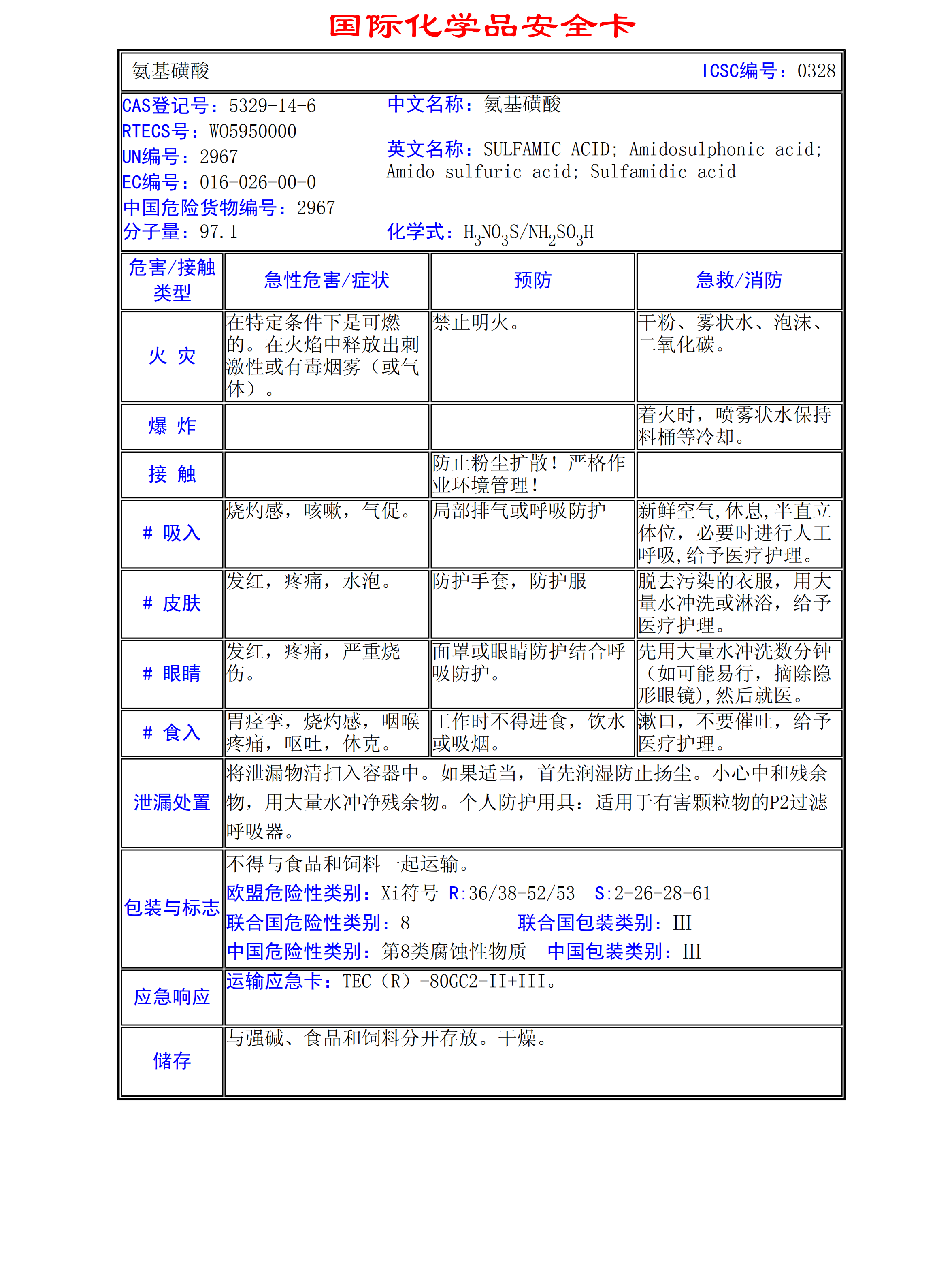 氨基硫酸MSDS