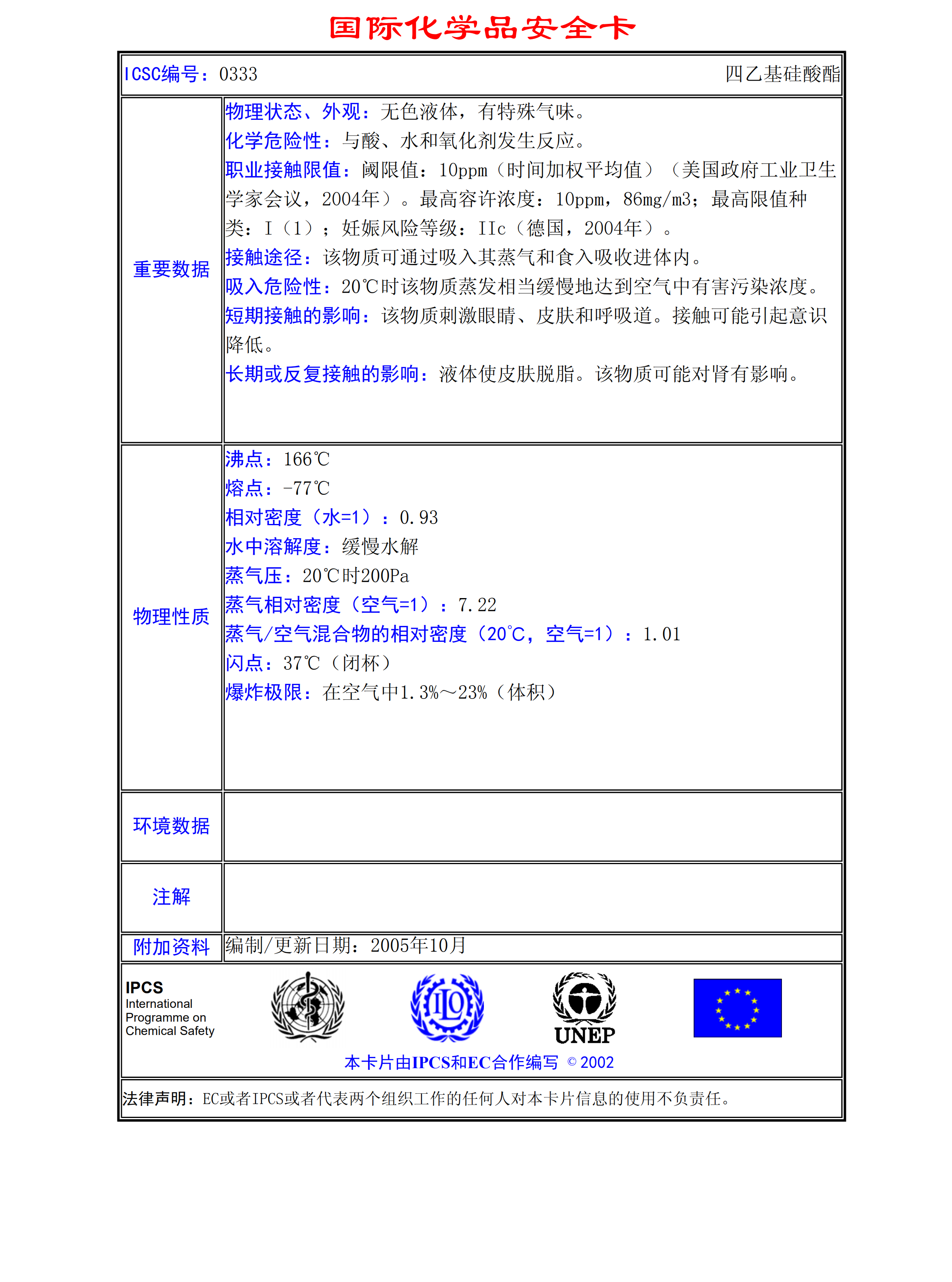 四乙基硅酸酯MSDS