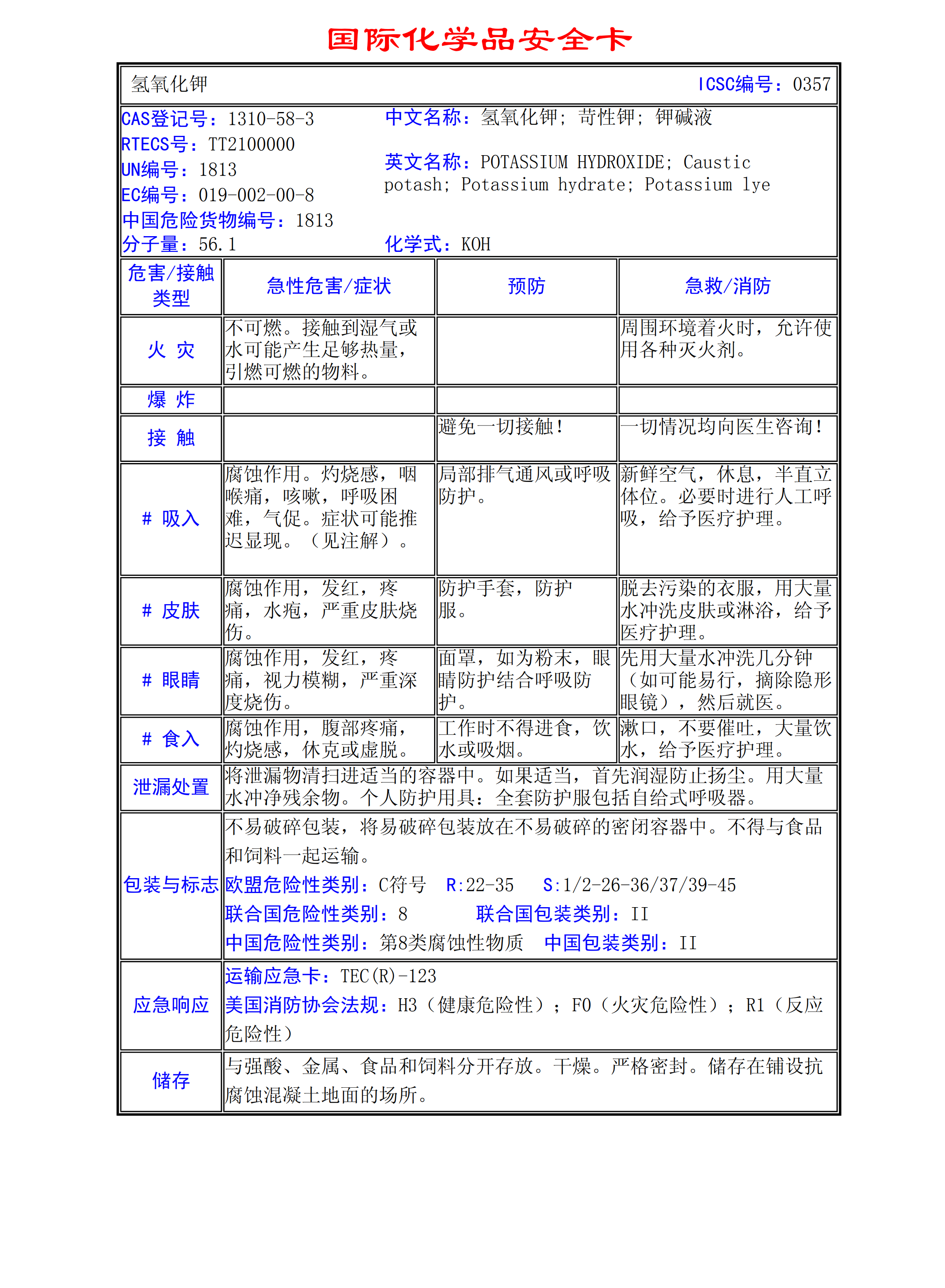 氫氧化鉀MSDS