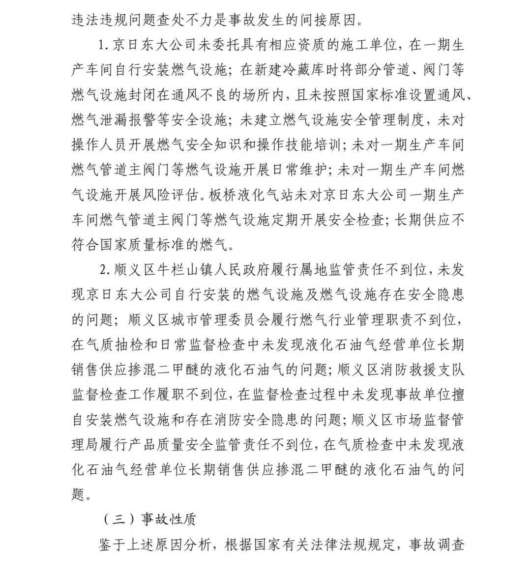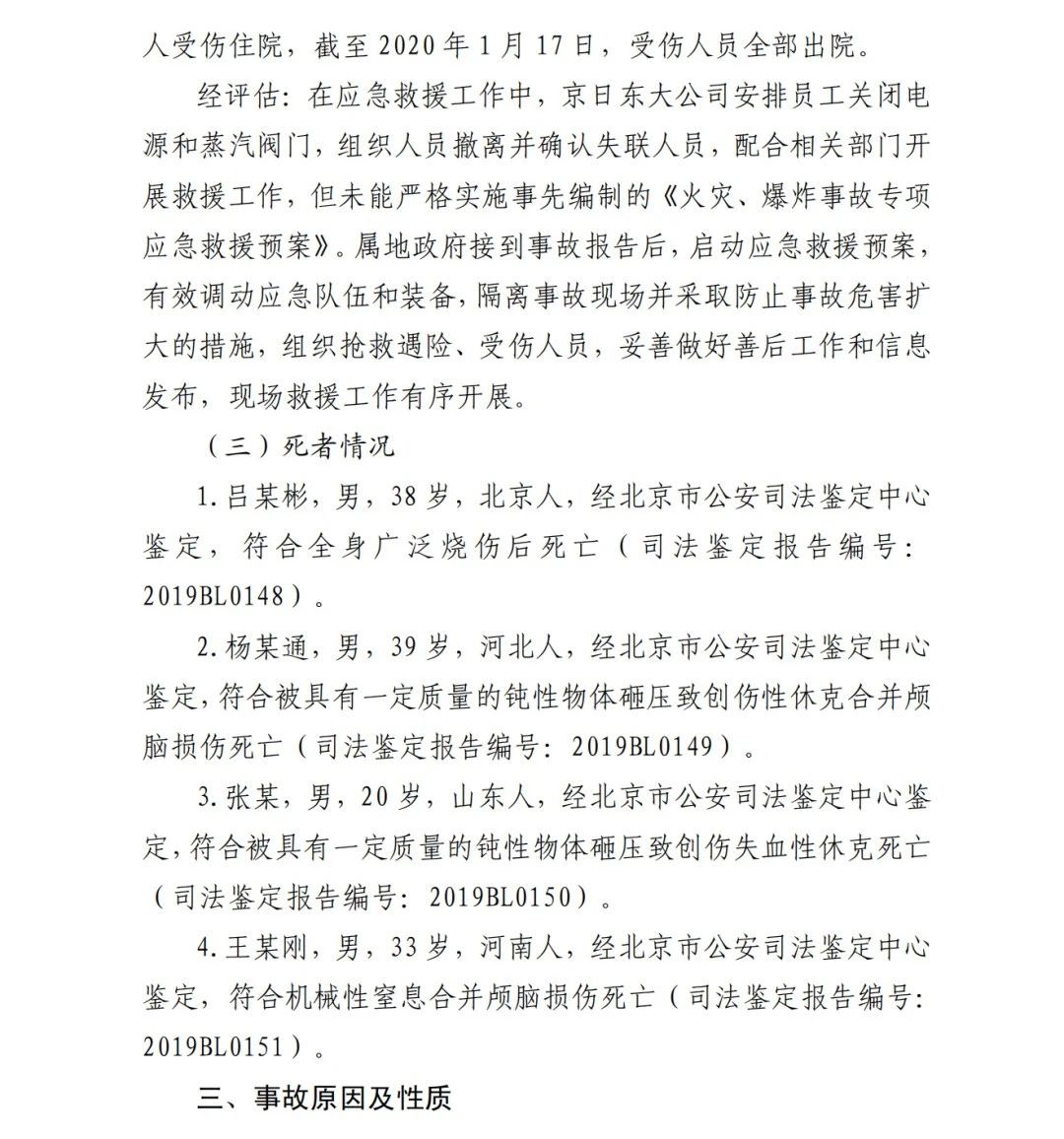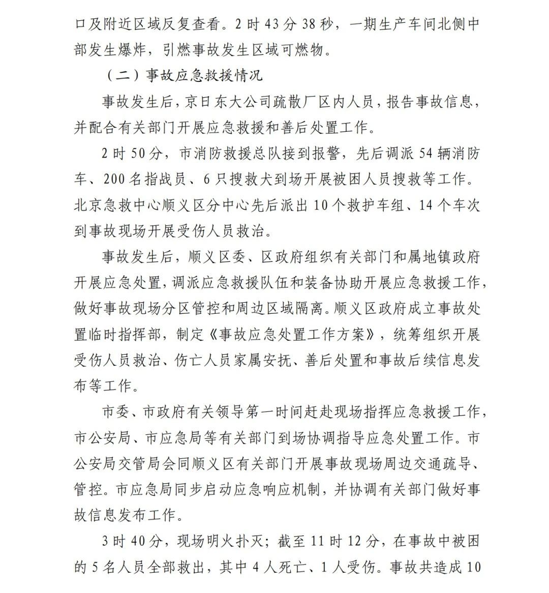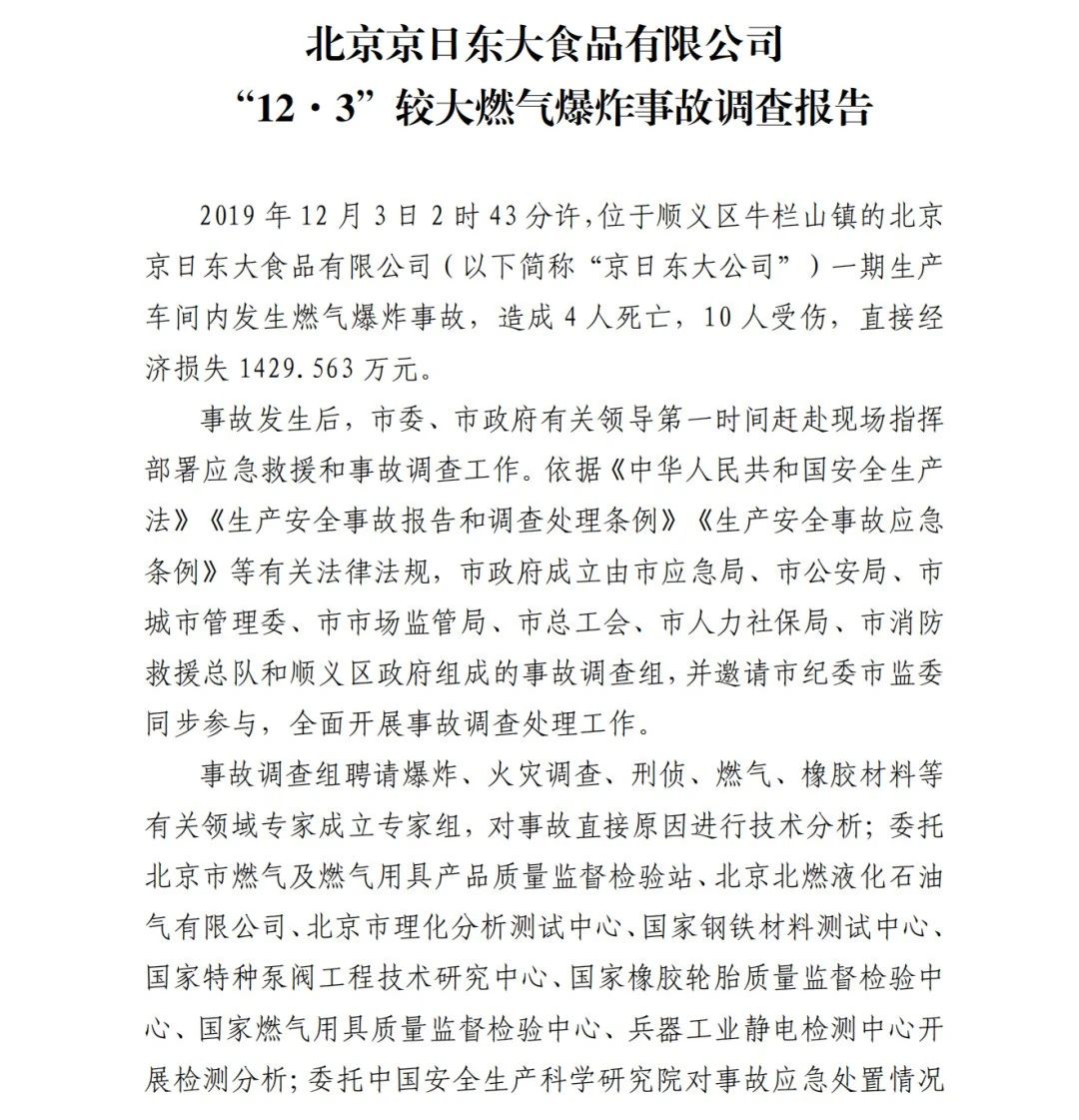 2019年12月3日2時(shí)43分許,北京順義區(qū)牛欄山鎮(zhèn)的(以下簡(jiǎn)稱“京日東大公司”)一期生產(chǎn)車間內(nèi)發(fā)生燃?xì)獗ㄊ鹿?,造?人死亡,10人受傷,直接經(jīng)濟(jì)損失1429.563萬(wàn)元。