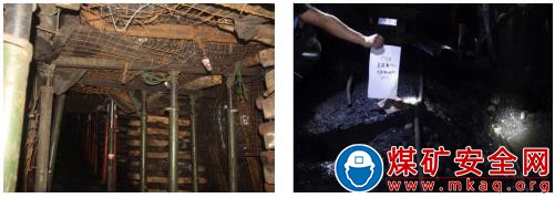 巷道支護(hù)系統(tǒng)沒有承受住強(qiáng)動(dòng)載沖擊。事故巷道沿底板托頂煤掘進(jìn),上部為頂煤和泥巖組成的復(fù)合頂板,節(jié)理發(fā)育,受到?jīng)_擊后易碎脹破壞。從事故現(xiàn)場情況看,礦井按照《煤巷錨桿支護(hù)技術(shù)規(guī)范》設(shè)計(jì)的巷道支護(hù),但這次沖擊載荷超過現(xiàn)支護(hù)的承載能力,造成事故區(qū)域巷道破壞。