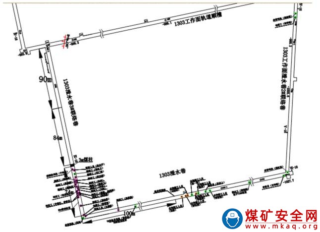 2 1303 工作面泄水巷掘進(jìn)工作面到各采掘地點(diǎn)的距離