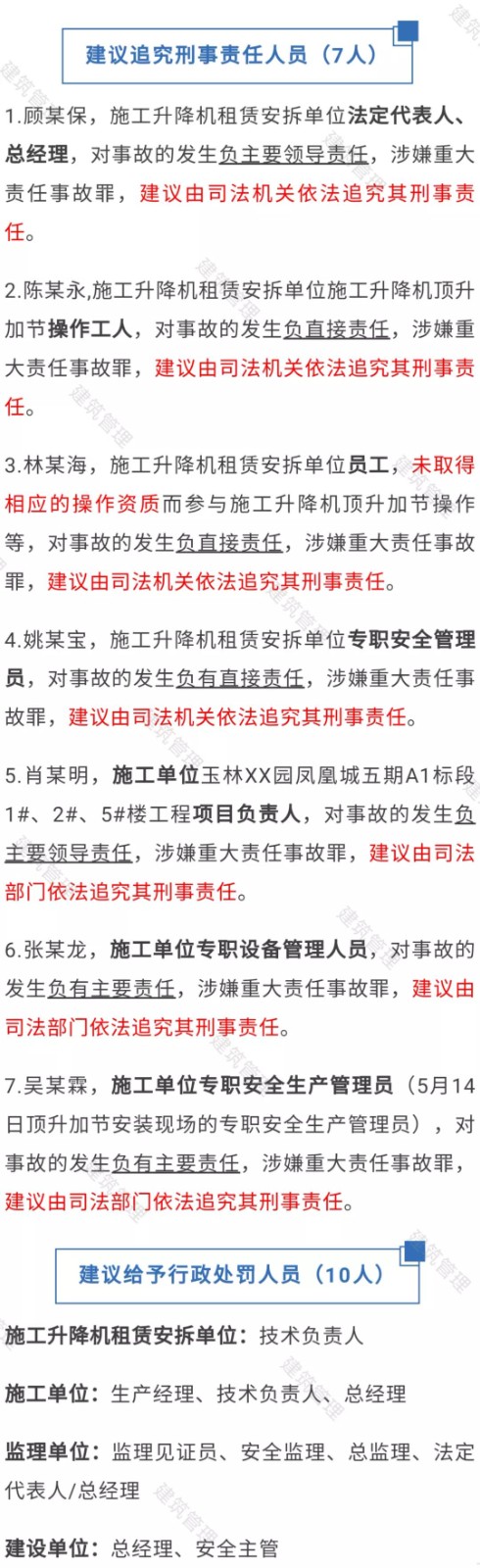 玉林升降機墜落致6人死亡!項目負責人安全員等7人被追刑責!10人被處罰!調(diào)查報告公布