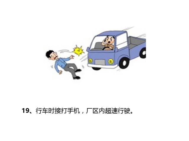 一、操作失誤、忽視安全、忽視警告 二、造成安全裝置失效 三、不安全的使用設(shè)備 四、用手替代工具操作 五、物體存放不當(dāng) 六、冒險進(jìn)入危險場所 七、處于不安全的位置 八、在起吊物下停留、作業(yè) 九、機(jī)械運轉(zhuǎn)時加油、修理、檢查、調(diào)整、焊掃等 十、分散注意力的行為 十一、忽視實用個人防護(hù)用具 十二、不安全裝束 十三、對易燃易爆等危險品處理錯誤