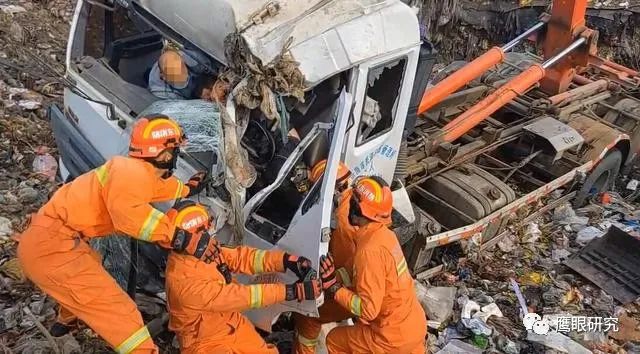 消防救援人員通過(guò)電話詢問(wèn)現(xiàn)場(chǎng)報(bào)警人了解到,該垃圾車在卸載垃圾時(shí)抬升過(guò)高,導(dǎo)致滑入垃圾池內(nèi)側(cè)翻,有1名人員被困。