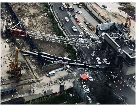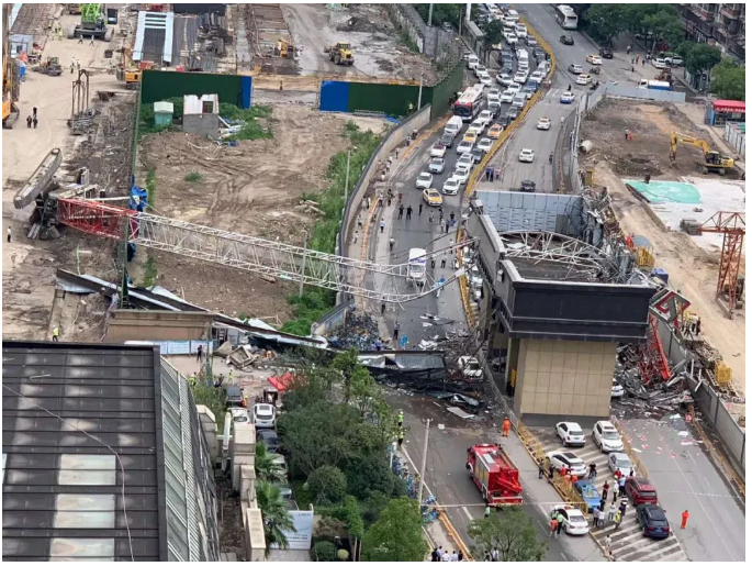 突發(fā)!起吊鋼筋籠時(shí),工地履帶吊突然側(cè)翻砸中行駛車輛