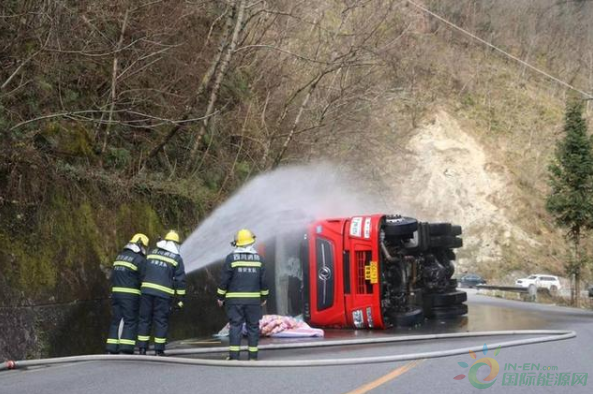 消防隊(duì)員10時(shí)48分到達(dá)現(xiàn)場(chǎng),偵查發(fā)現(xiàn)天然氣槽車(chē)側(cè)翻在道路靠山體一旁。經(jīng)偵察,事故車(chē)輛為一輛裝載22噸液化天然氣槽罐車(chē)側(cè)翻,事故發(fā)生后車(chē)內(nèi)兩名司乘人員自行撤離出,身體并無(wú)大礙,車(chē)輛罐體表面無(wú)破損,未發(fā)生泄漏。