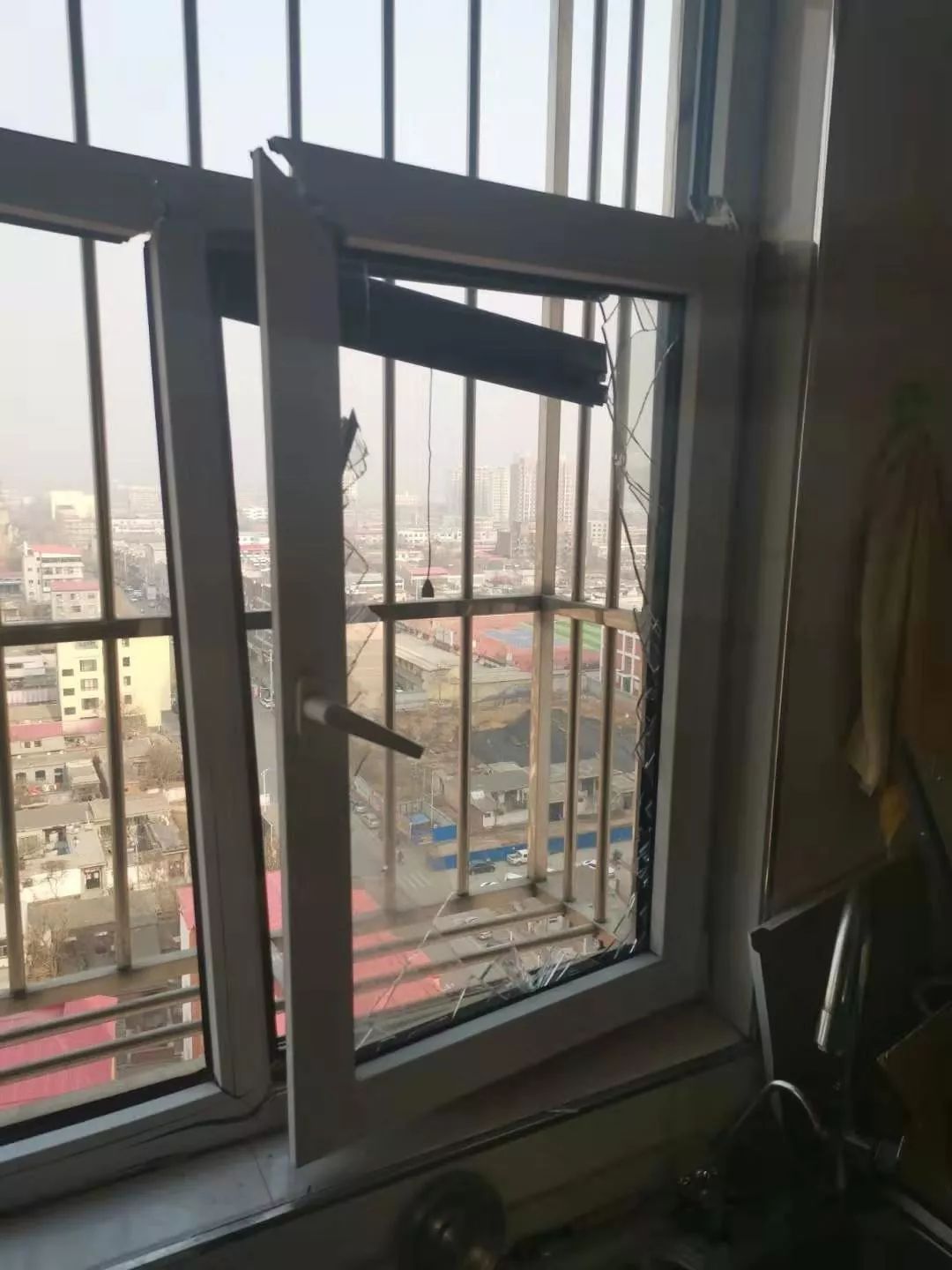 這是贊皇縣翰林官邸小區(qū)11號(hào)樓前監(jiān)控視頻拍攝的畫面。從監(jiān)控上看,樓上住戶玻璃破損有大量碎玻璃掉落到樓下。記者了解到這些碎玻璃是從這棟樓21層一戶掉落下來的。之后,記者來到這家住戶屋內(nèi)。
