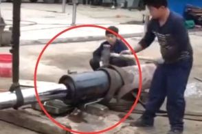 敲打液壓缸時突然發(fā)生事故