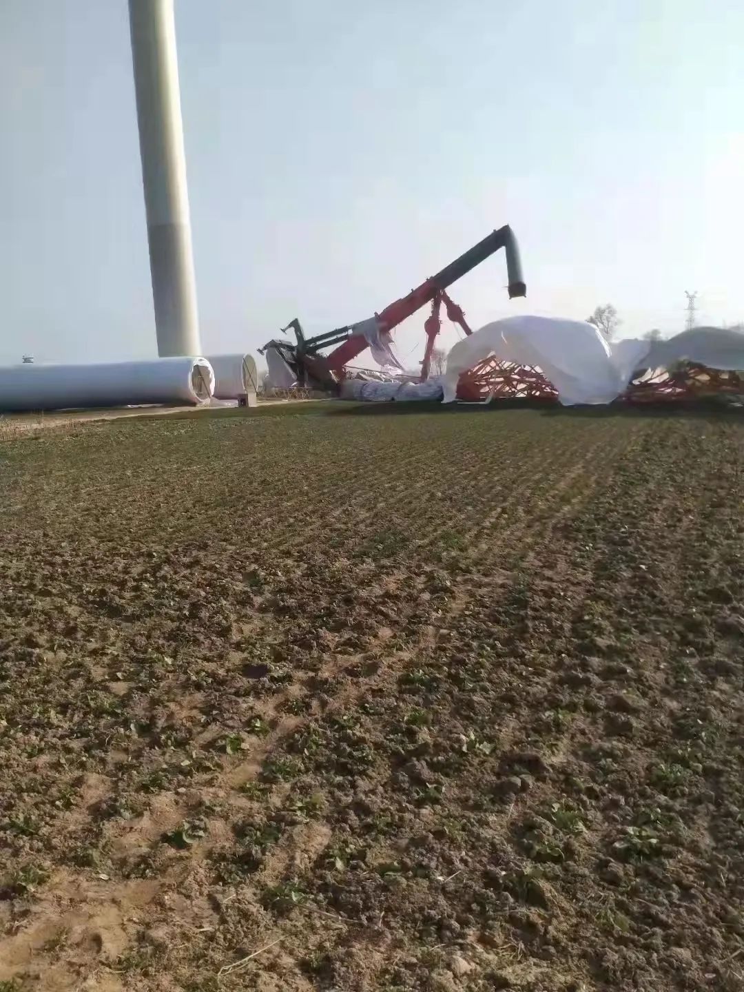 2022年2月26日,某風(fēng)電項(xiàng)目吊裝過程中發(fā)生主吊大臂折斷事故(疑似800噸吊車折臂倒下)