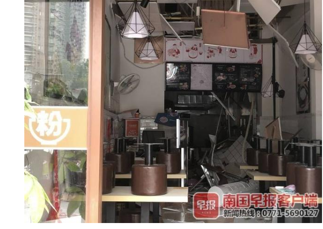 當天上午9時許,記者在現(xiàn)場看到,出事的粉店位于小區(qū)沿街商鋪,鋪面前已拉起了警戒線?,F(xiàn)場沒有明火,店內(nèi)多處玻璃被震碎,一片狼藉。事發(fā)粉店旁邊的其他店鋪并未受影響,正常營業(yè)。