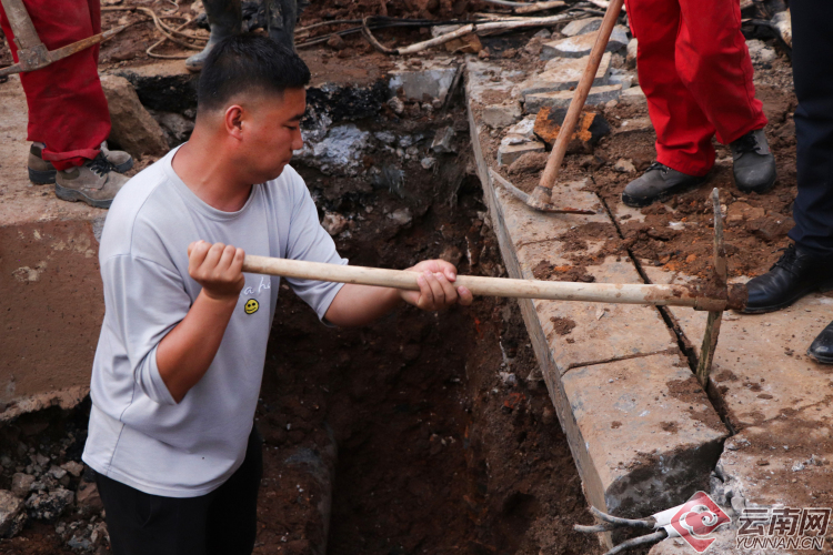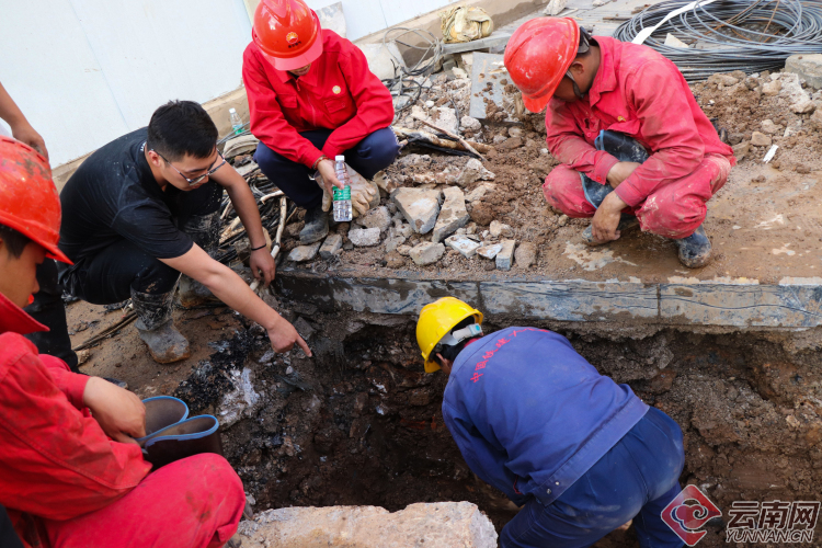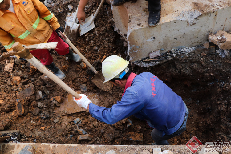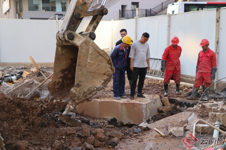 【昆明塘子巷天然氣泄漏】現(xiàn)場(chǎng):多部門聯(lián)手搶修 施工人員奮力挖掘破損管道