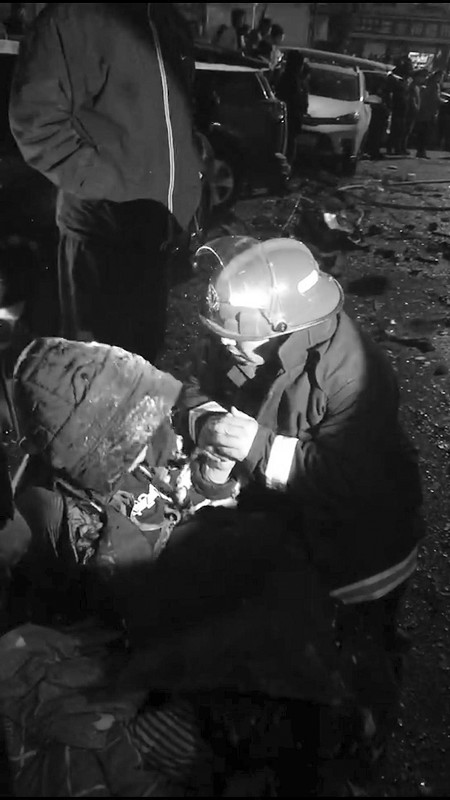 消防隊(duì)員從樓內(nèi)背出多名傷者。記者看到,部分傷者頭部流血。“挺住啊,一定要堅(jiān)持住!”一名男子捂著一名男性傷者的頭部,在刺骨的寒風(fēng)中不住地鼓勵(lì)他。同時(shí),有部分尚能自己行走的傷者在親人攙扶下被疏散到安全區(qū)域。