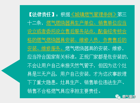 2、事故受害方責(zé)任追究過(guò)程中需要考量的內(nèi)容包含但不限于:燃?xì)夤驹谥脫Q通氣時(shí)是否履行了安全宣傳教育;燃?xì)夤臼欠衩磕甓既霊?hù)安檢并對(duì)燃?xì)怆[患提出整改意見(jiàn);燃?xì)夤景惭b燃?xì)庠?、燃?xì)鈭?bào)警器和電磁閥是否符合國(guó)家規(guī)范;燃?xì)夤咎峁┑娜細(xì)庠?、燃?xì)鈭?bào)警器和電磁閥是否質(zhì)量合格;其他需要注意的問(wèn)題。