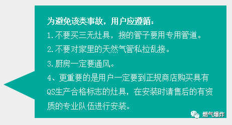 2012年7月27日重慶奉節(jié)縣一居民家發(fā)生天然氣意外泄漏事故,發(fā)生事故的居民家中所有家具和電器都被燒毀,窗戶(hù)的玻璃已被震爛。爆炸造成一家6人燒傷,最終一人搶救無(wú)效死亡。據(jù)網(wǎng)上報(bào)道爆炸是由于天然氣管道與輸氣軟管之間存在縫隙,導(dǎo)致天然氣泄漏引發(fā)的。在該戶(hù)家中,發(fā)現(xiàn)新買(mǎi)的燃?xì)庠罹?,是個(gè)三無(wú)產(chǎn)品。該戶(hù)的燃?xì)夤艿?,是由兩根軟管接起?lái)的,一根軟管不夠長(zhǎng),中間還用一根硬塑料管連了起來(lái),還使用了膠水來(lái)粘接,這是非常危險(xiǎn)的作法,連接的塑料管是硬的,天然氣完全可能因連接處泄漏出來(lái)。也許是用戶(hù)點(diǎn)了火,也許只是開(kāi)了某一種電器的開(kāi)關(guān),就引起了天然氣爆炸,隨后的火焰擴(kuò)散,屋內(nèi)東西全部燒毀。