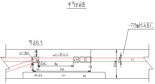 +775m回風(fēng)石門設(shè)計長度580m,已施工241m,坡度3‰,直墻半圓拱斷面, 巷道凈寬4.8m,凈高4m,凈斷面積16.81㎡,支護方式為錨網(wǎng)索噴。巷道內(nèi)鋪設(shè)軌道軌距為600mm,事故地點鋪設(shè)單道。