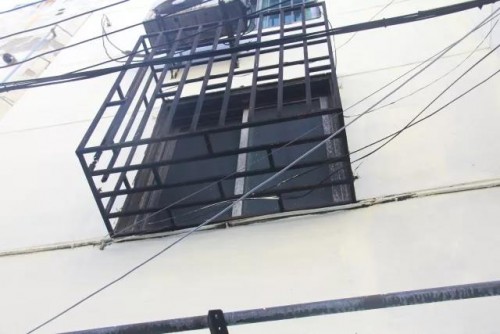 雖然墻面已經(jīng)重新涂抹,但是2樓的窗戶和空調(diào)以及外墻的各種電線已經(jīng)烤焦了。