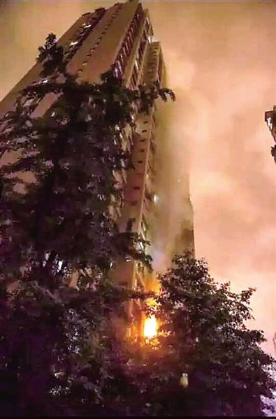 22日晚上9點過,重慶晨報記者趕到了事發(fā)現(xiàn)場。此時,因爆炸引發(fā)的火災已經(jīng)被消防官兵撲滅,但事發(fā)的9棟樓依舊被警戒線圍著。事發(fā)樓下,數(shù)十名居民圍在此地議論紛紛。
