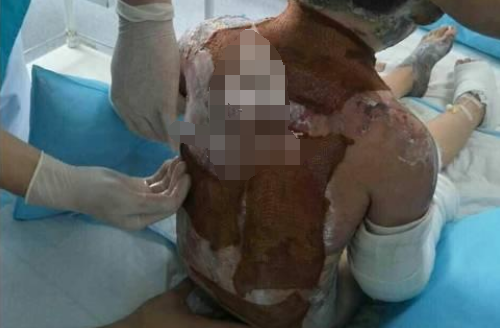 事故發(fā)生后家屬和鄰居立即將傷者送往醫(yī)院搶救,因為83歲的姥姥受傷較輕目前在縣醫(yī)院接受治療,10歲的黃澤和53的母親被送往承德醫(yī)學(xué)院附屬醫(yī)院搶救。經(jīng)診斷母親全身大面積燒傷,燒傷面積達(dá)42%,10歲的黃澤全身大面積燒傷,燒傷面積達(dá)46%,并伴有頭皮裂傷等情況,目前兩位傷者都處于危險期。