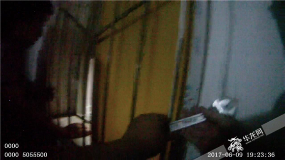 19點26分,僅用3分鐘,防盜網一側的螺絲就被拆除。為了節(jié)約時間,民警沒有全部拆除,而是合力掀起防盜窗一角,讓身材相對瘦小的當事女子表弟馮某鉆入房內打開房門。