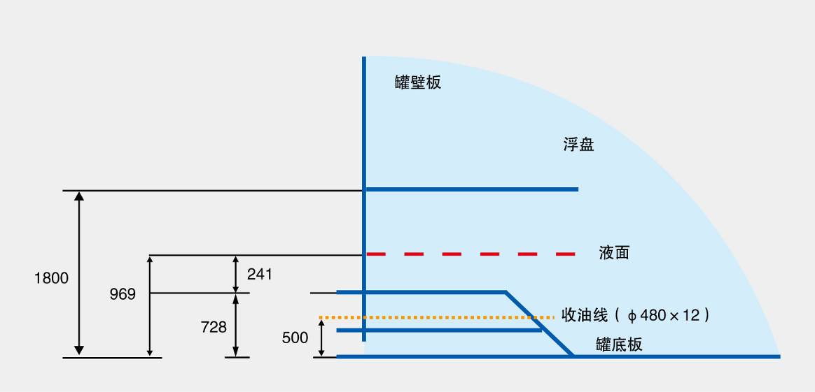 圖1 875#收油前罐內(nèi)浮盤與液面間的距離